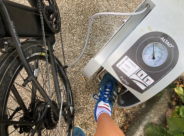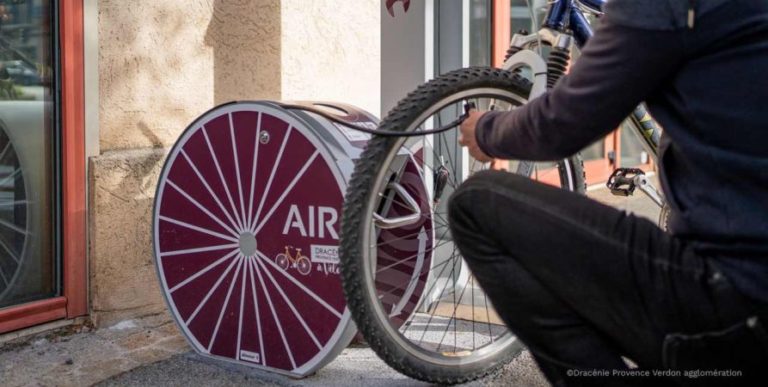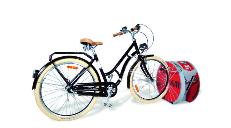 ALTAO® Pump satisface la primera necesidad de servicio de los ciclistas: ¡el inflado! La estación ALTAO® Pump no necesita obra ni electricidad: el ciclista bombea con el pie para inflar su bicicleta. Por lo tanto, se puede instalar en un abrir y cerrar de ojos y en cualquier lugar y se puede utilizar con todo todo tipo de válvulas (Presta, Schrader y Dunlop).