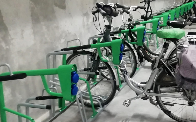 Estos puntos de recarga son la solución perfecta para ofrecer a los usuarios la posibilidad de recargar sus bicicletas en el mismo punto donde las guardan.