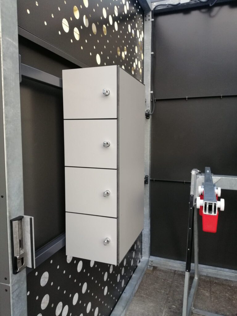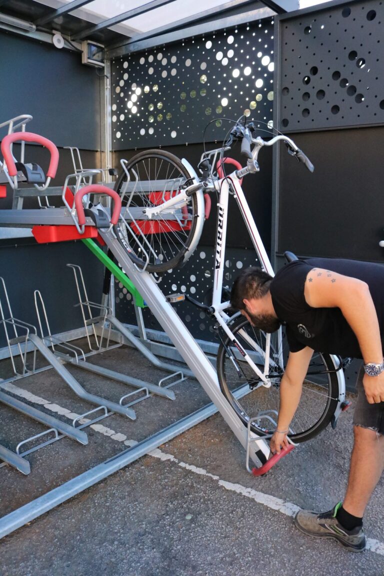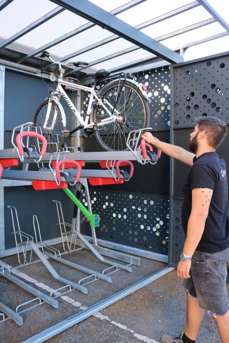 La sencillez de su diseño, que incluye control de acceso, y la incorporación de aparcabicis de doble altura para maximizar el espacio que ocupa, lo convierten en la solución perfecta para crear puntos seguros de parking para bicis personalizables, escalables y replicables con una mínima inversión y reduciendo los tiempos de instalación.