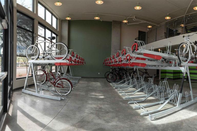 Especialmente diseñado para espacios de aparcamiento donde sea necesario aparcar un elevado número de bicis de forma ordenada, accesible y elegante, causando un gran impacto visual capaz de contribuir a crear cultura de la bicicleta: