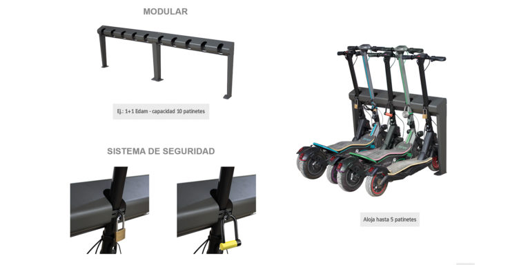 • Aparcapatinetes universal que puede instalarse en cualquier ubicación y ampliarse a demanda.