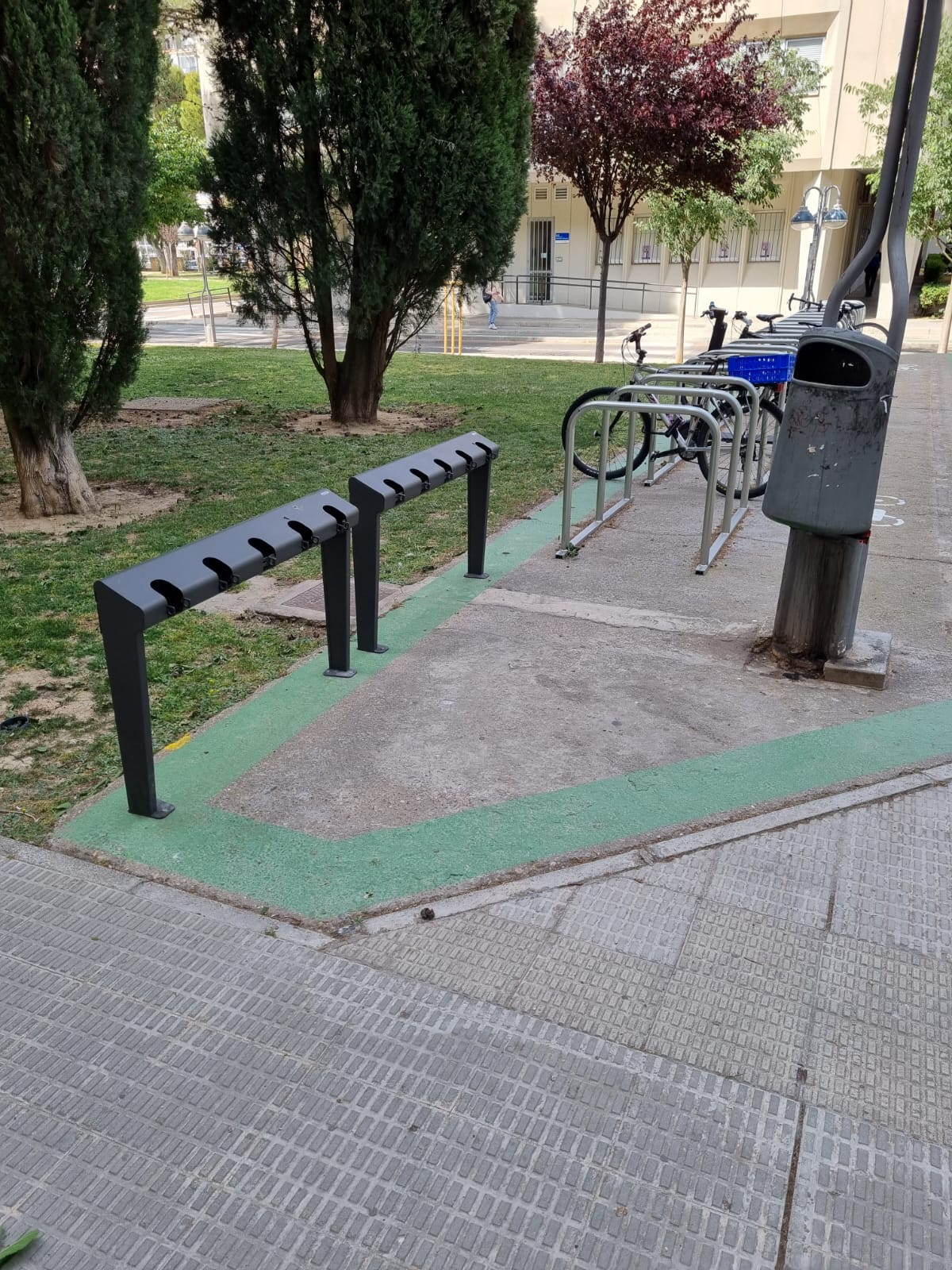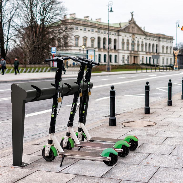 Resistente y robusto, dota de elegancia cualquier espacio urbano donde sea necesario mantener los VMP debidamente aparcados y candados.