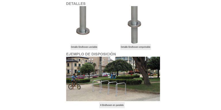 Aparcabicicletas integrado perfectamente en el paisaje urbano, con capacidad para 2 bicicletas.