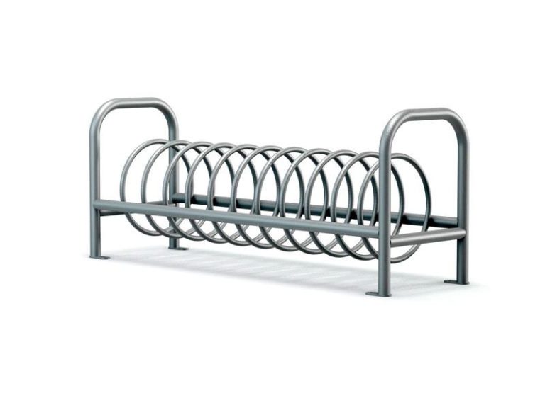 Aparcabicis sencillo, para un total de 12 bicicletas, que se intala atornillado al suelo y que puede estar en interior o en exterior.