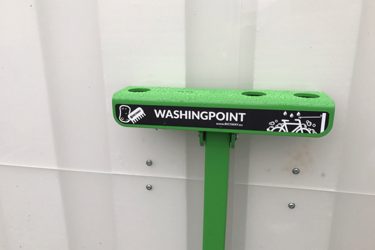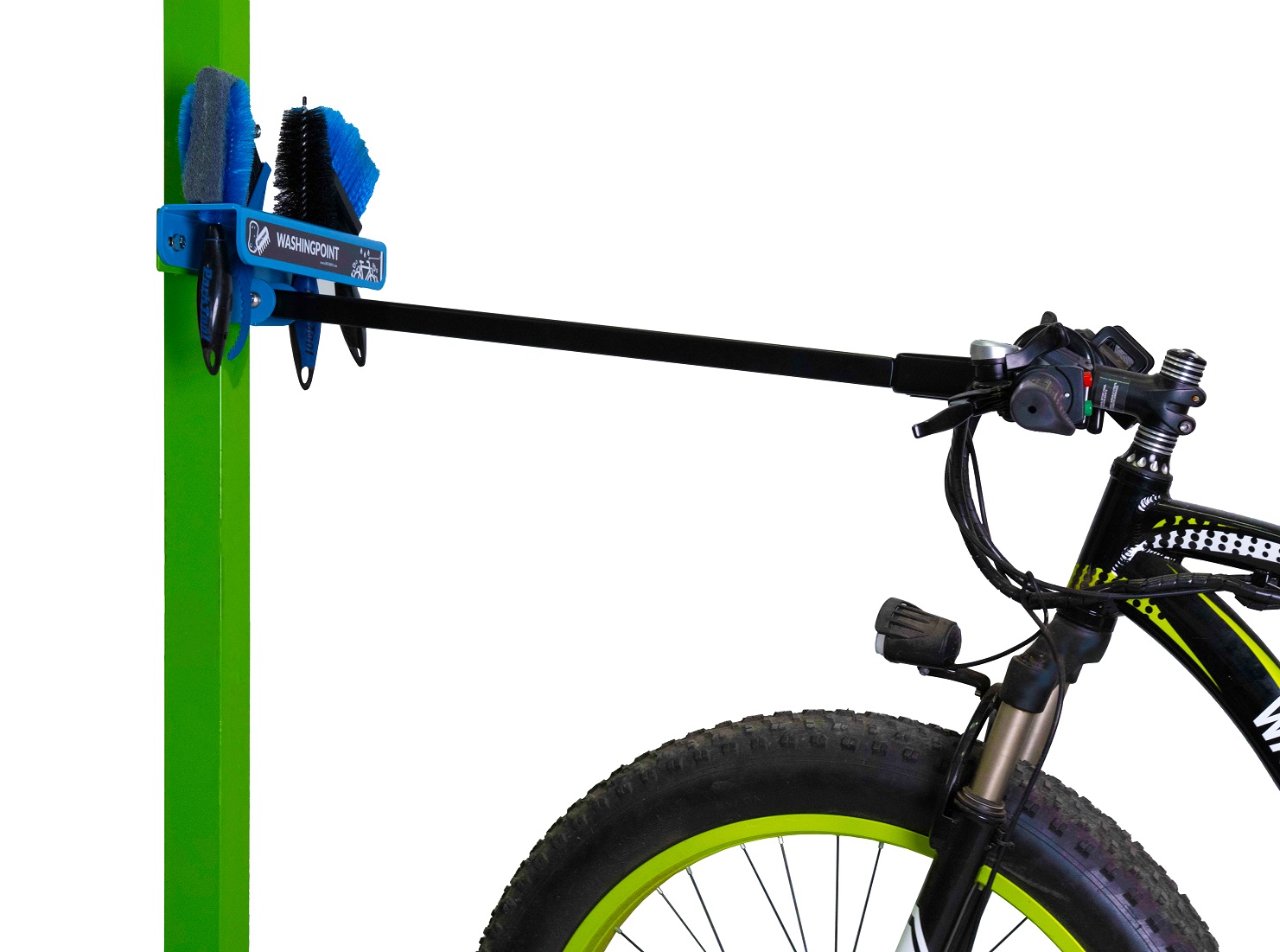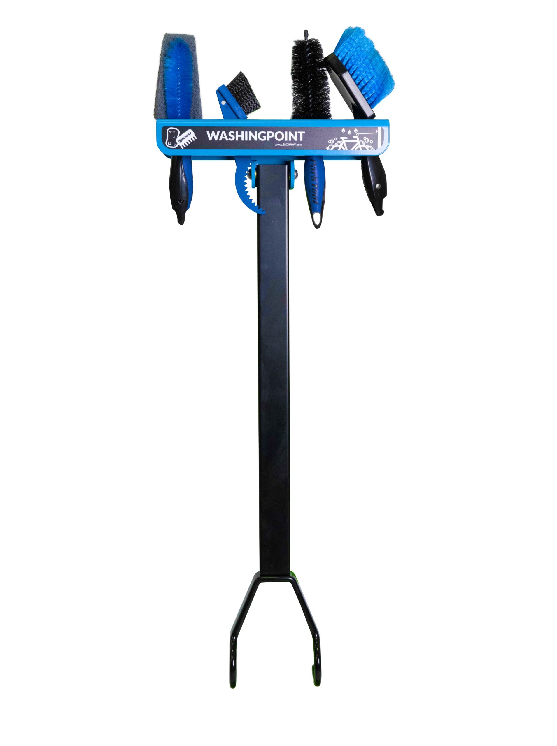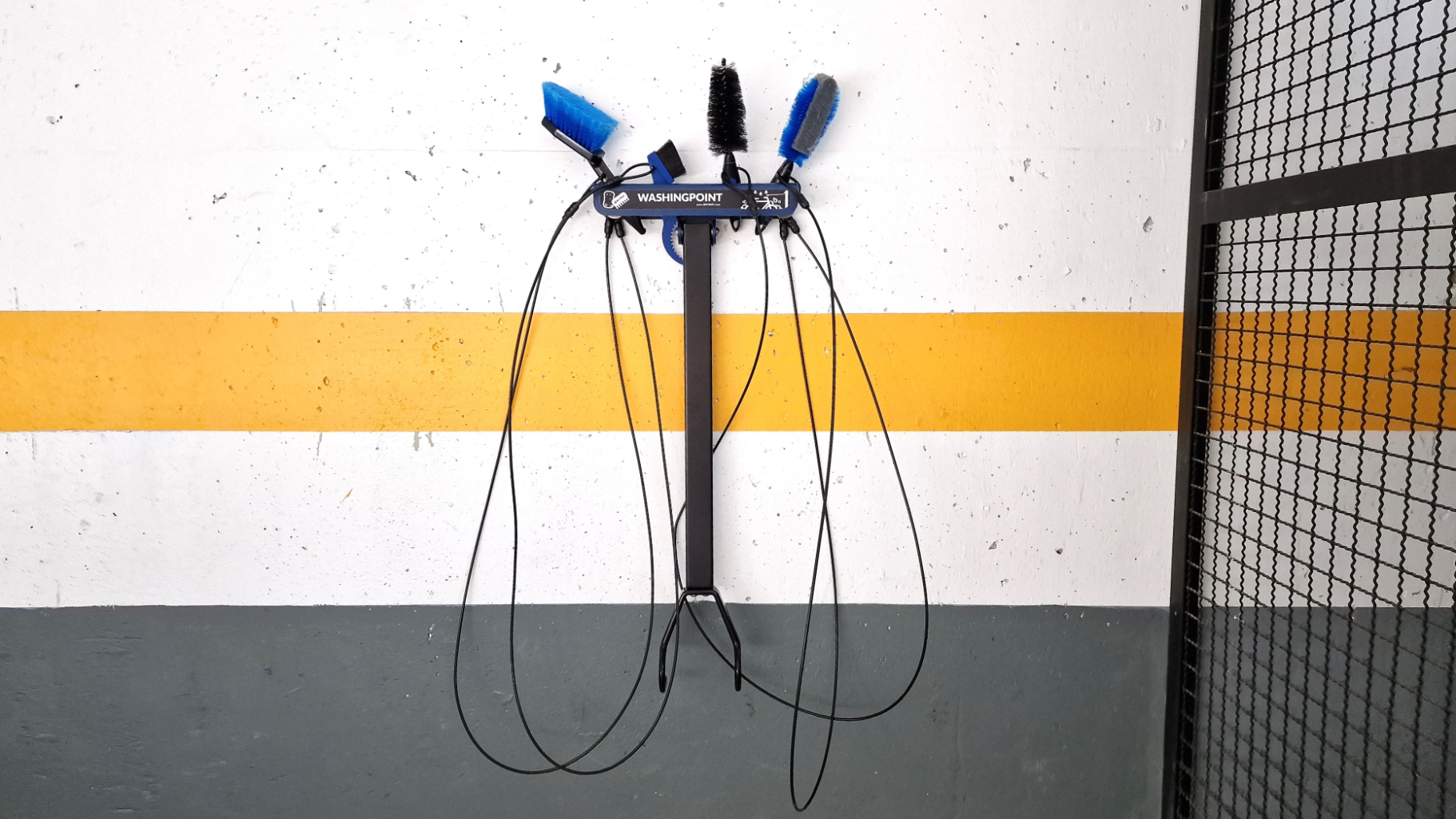 Pensada tanto para el ciclista urbano como para la bicicleta de montaña o carretera, esta miniestación de lavado ofrece un soporte para guardar de forma ordenada los accesorios de limpieza y una barra para sujetar la bicicleta, permitiendo desde un enjuague rápido hasta una limpieza más rigurosa.