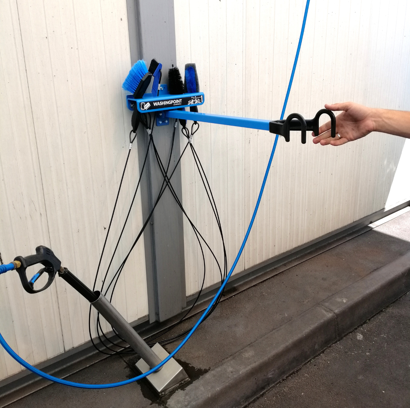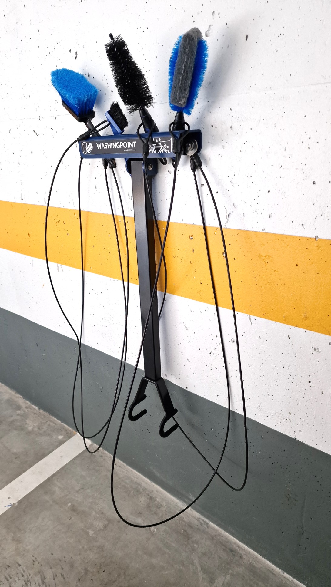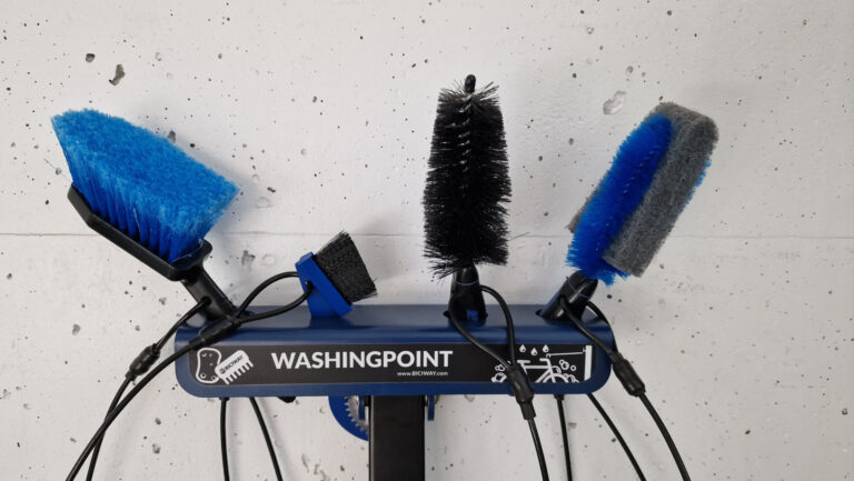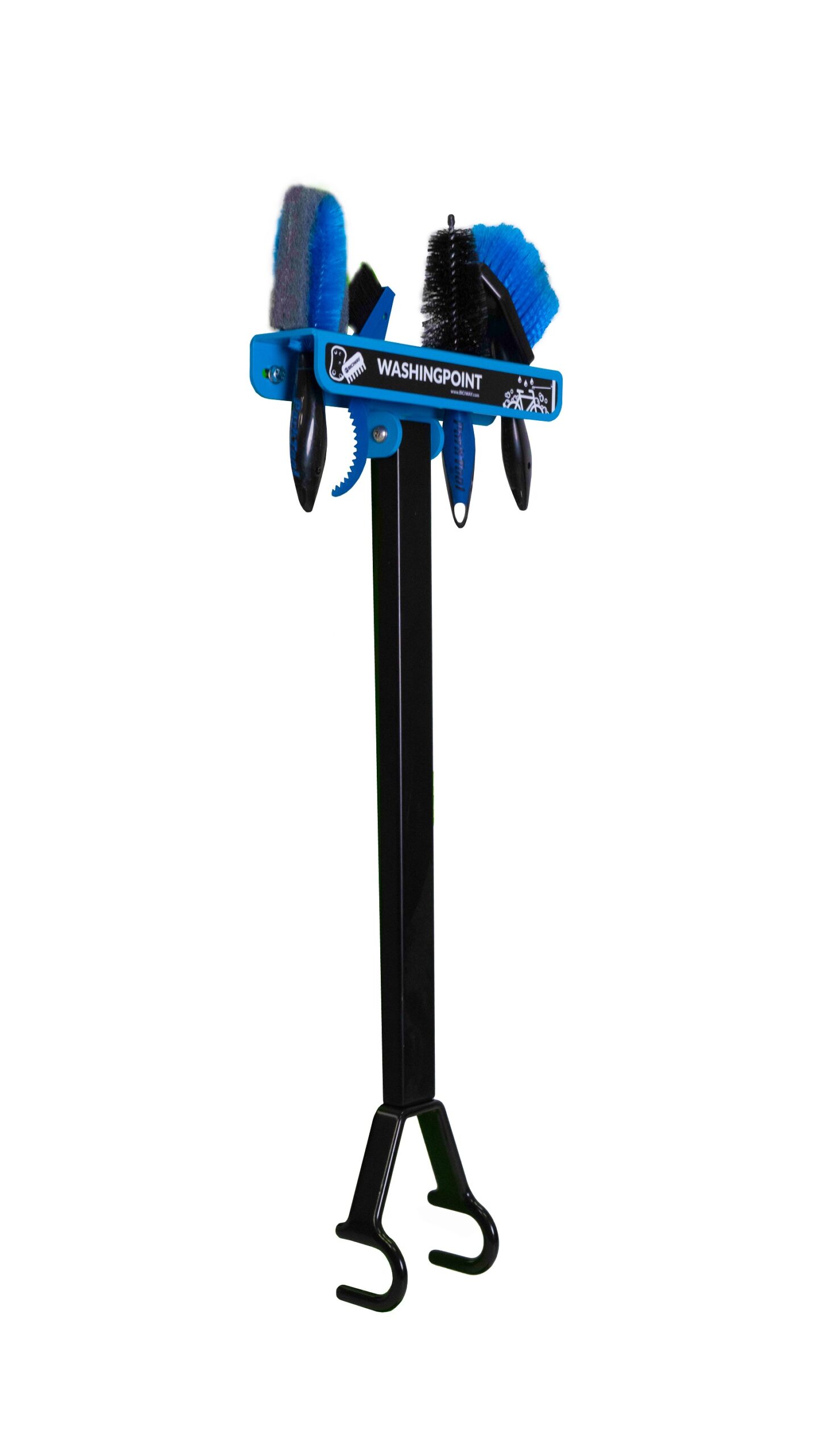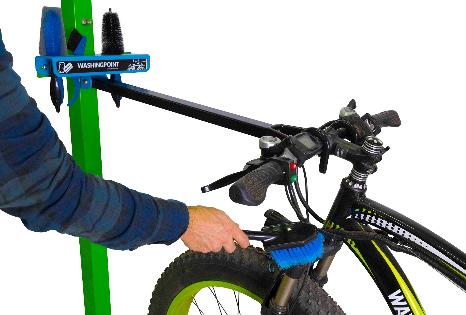 Pensada tanto para el ciclista urbano como para la bicicleta de montaña o carretera, esta miniestación de lavado ofrece un soporte para guardar de forma ordenada los accesorios de limpieza y una barra para sujetar la bicicleta, permitiendo desde un enjuague rápido hasta una limpieza más rigurosa.