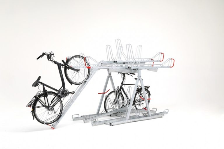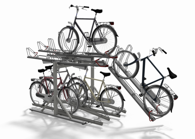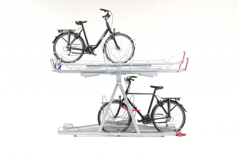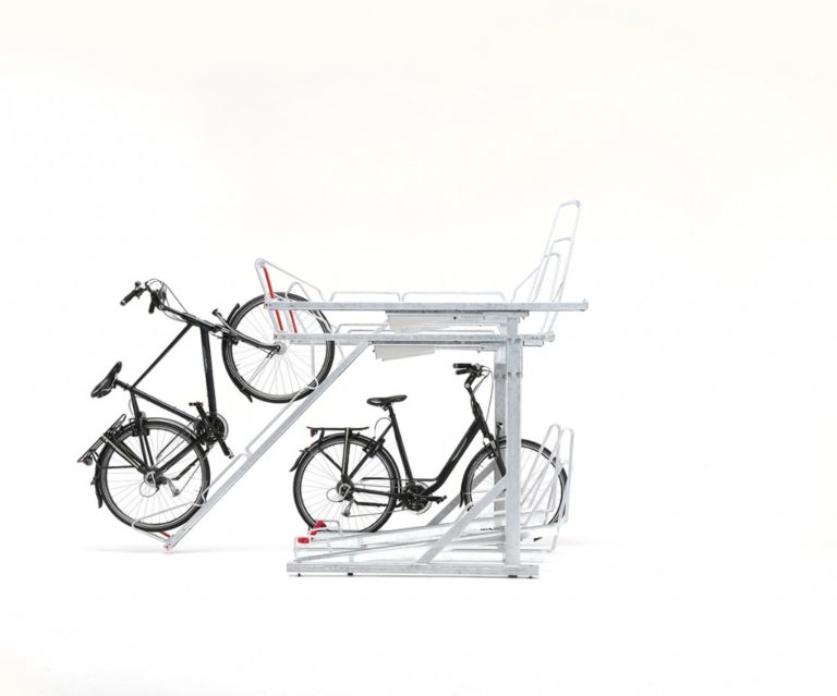 Con la garantía de estar fabricado por los inventores de los aparcabicis de doble altura, este sistema, que ofrece una excelente relación calidad-precio, asegura una máxima optimización del espacio en áreas de alta densidad, resulta muy fácil de utilizar, sirve tanto para interior como para exteriores y cumple con los estándares de calidad del certificado FietsParKeur para los aparcabicis de doble altura.