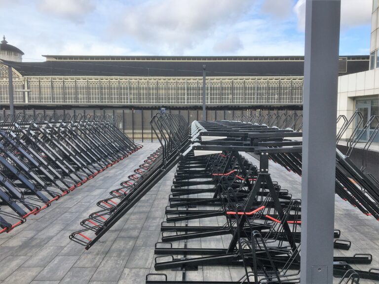 Especialmente diseñado para espacios de aparcamiento donde sea necesario aparcar un elevado número de bicis de forma ordenada y accesible.