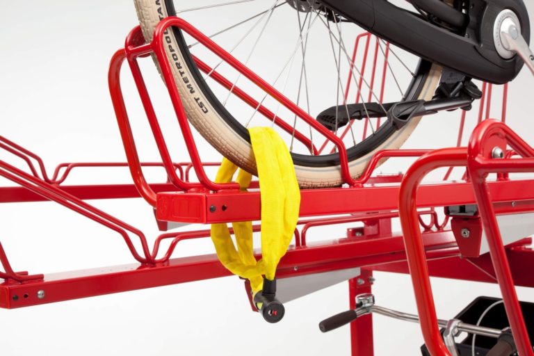 Válido para espacios abierto o cerrados, vigilados o no, incorpora un sistema neumático para facilitar el aparcamiento en el nivel superior y, gracias a su diseño, la seguridad del usuario está siempre garantizada. Fabricado en módulos de varias medidas, ofrece unas prestaciones especialmente pensadas para las bicicletas de gran formato, las bicis eléctricas y las bicis con cestas y portabebés.