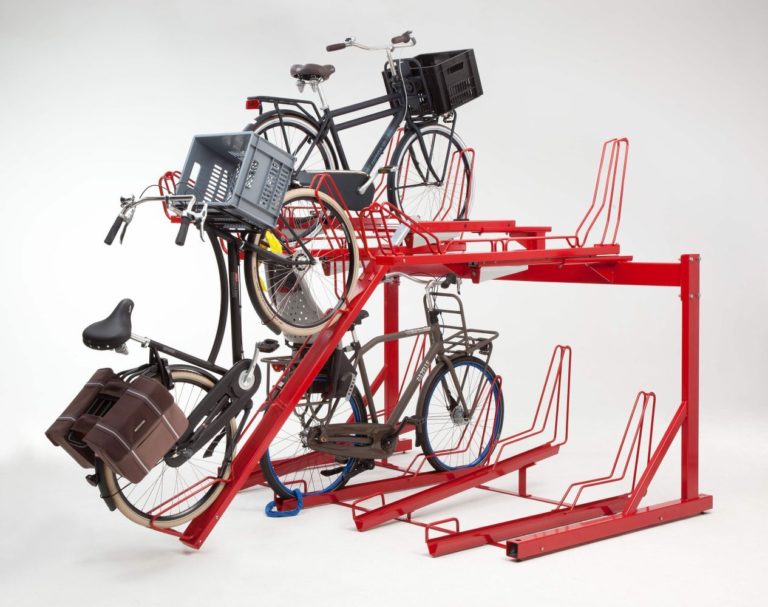 Este aparcabicis de VConsyst, los inventores de los aparcabicis de doble altura, o de tipo holandés, como se conocen en España, está especialmente diseñado para aquellos puntos donde sea necesario aparcar un elevado número de bicicletas de gran formato de forma ordenada y elegante.