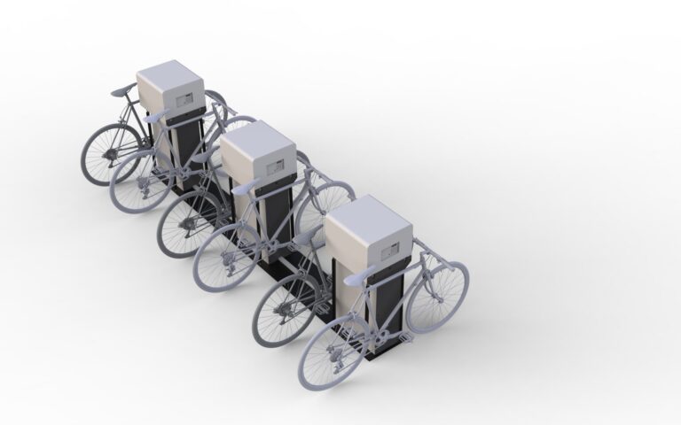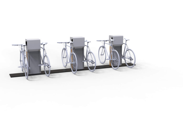 Parking con sistema de carga eléctrica para bicicletas y bicicletas eléctricas (e-bike). Aparcamiento ordenado y 100% compatible con todos los modelos.